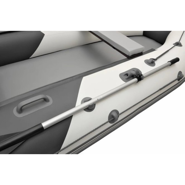 Независимые отсеки надувного дна, при наполнении их воздухом преобразуют дно в V - образную форму, что дает лодке превосходную управляемость по волне, а смещенный транец - просторный кокпит и небольшой вес лодки